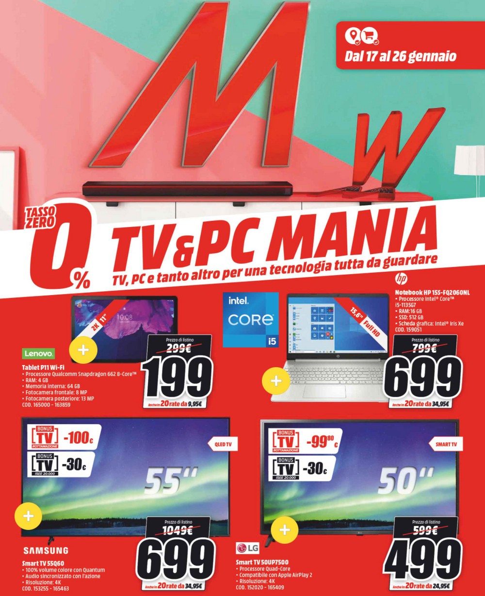 Mediaworld Tv E Pc Mania Ecco Il Nuovo Volantino In Vigore Dal 17 Gennaio Hdblog It
